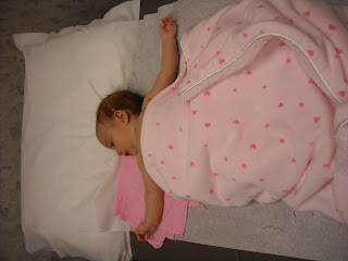 When we got home she was still really mad until I fed her. Since then she was suprisingly happy, smiling, etc. She is also very sleepy. I decided while she was happy that I would do some tummy time. Within two minutes she fell asleep on her mat. I am also attaching the failed attempt of tummy time below.